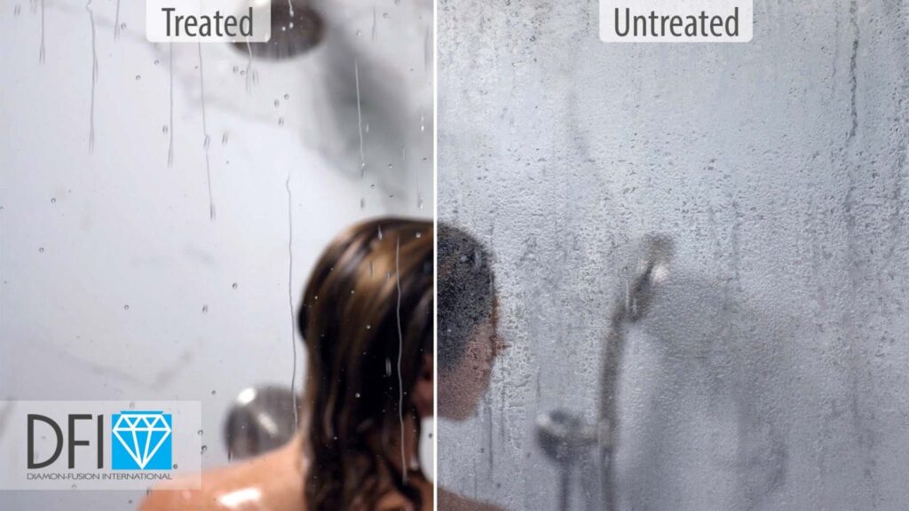 Diamon-Fusion® protective glass coating is the top choice for homeowners and glass professionals, with applications on over 10 million shower doors worldwide. Similar to a non-stick pan, Diamon-Fusion® makes treated surfaces easier to clean, reduces maintenance needs, and protects against hard water stains